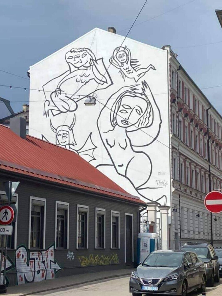 Это Рига, если что. И это не граффити, а фреска "Посвящение Джемме Скулме" (Джемма Скулме - известная латвийская художница, первая жена мужа Вии Артмане 😉)