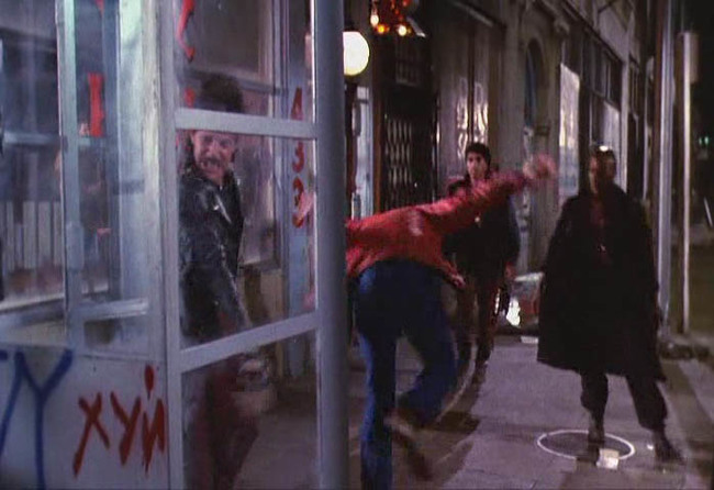 На фото - приемка работы комиссией представителей андерграунда одного из городов США. Претензий к оформлению (шрифт, цвет) не было, заказчика не устроил архитектурный стиль будки, ввиду чего она подверглась умеренному неконтролируемому сносу первой подвергнувшейся под руку металлоконструкцией.