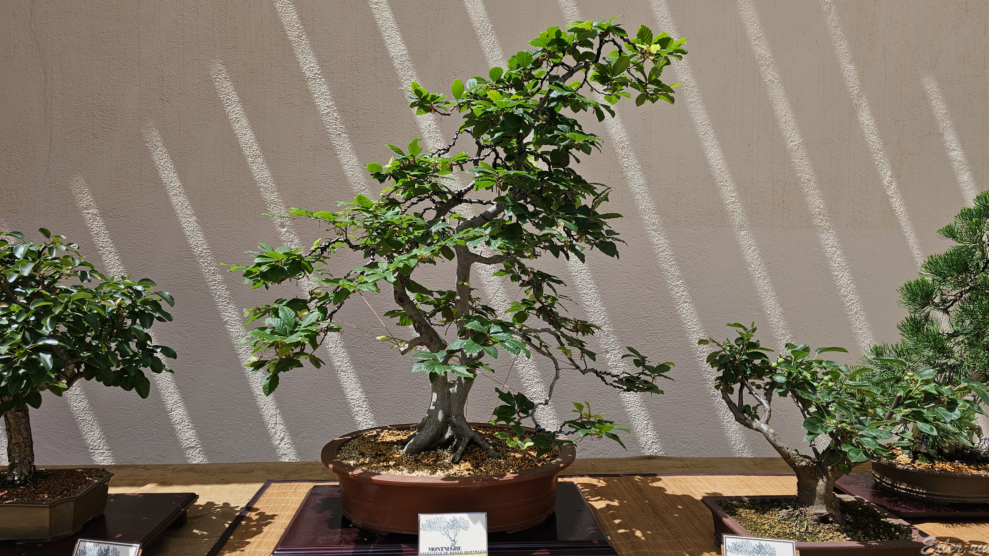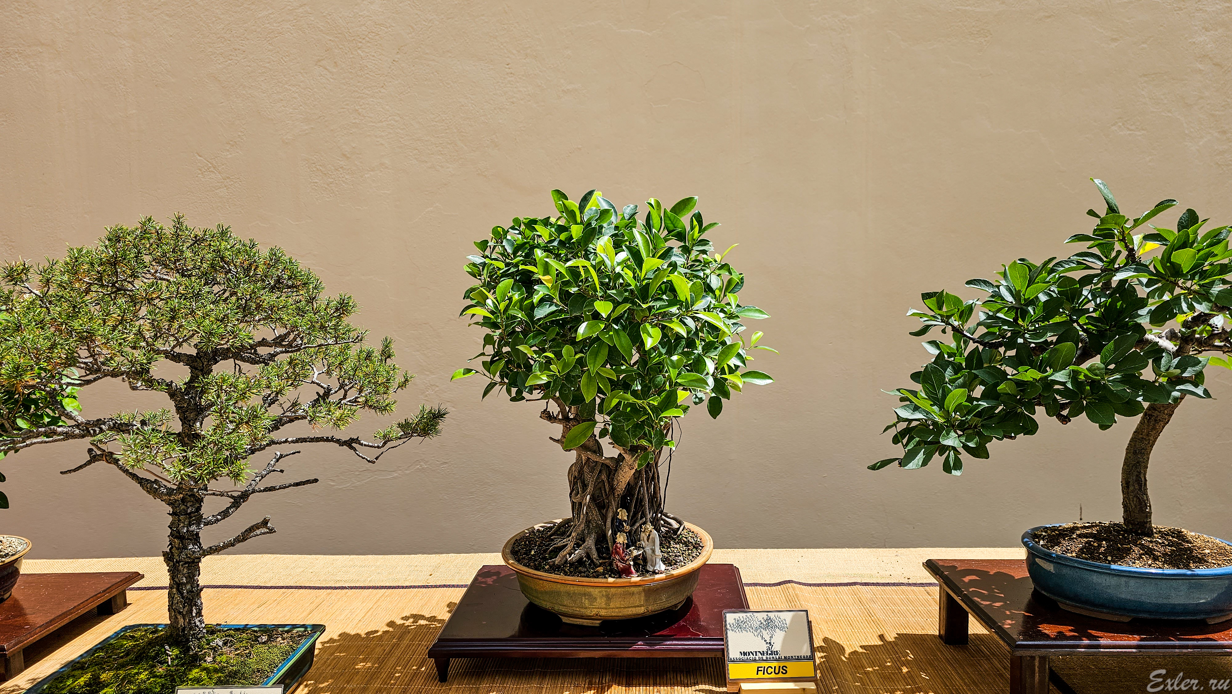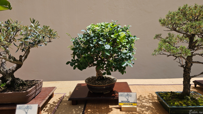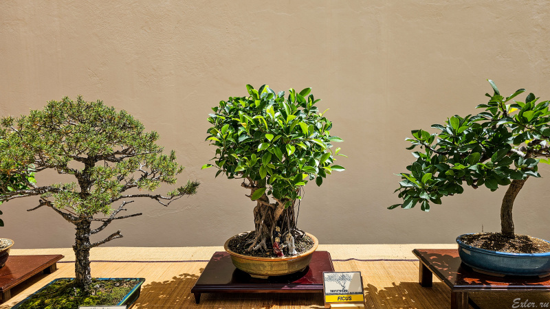 Традиционная выставка бонсай во дворе городской библиотеки.