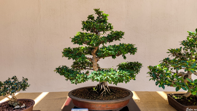 Небольшая выставка деревьей бонсай.