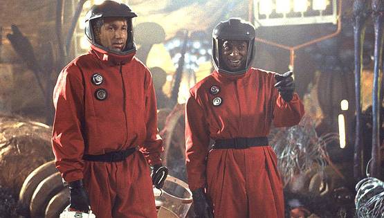 Но вот космонавт нештатно теряет сознание. Раз такое дело, Пересильд в окружении других космонавтов тут же бросается его оперировать. Она привязывает космонавта к столу и снимает с себя штаны! Но тут же надевает новые штаны и даже целый синий костюм, отчего становится похожа на смурфика еще сильнее. Затем Пересильд приколачивает себя к полу, чтобы несгибаемо торчать.