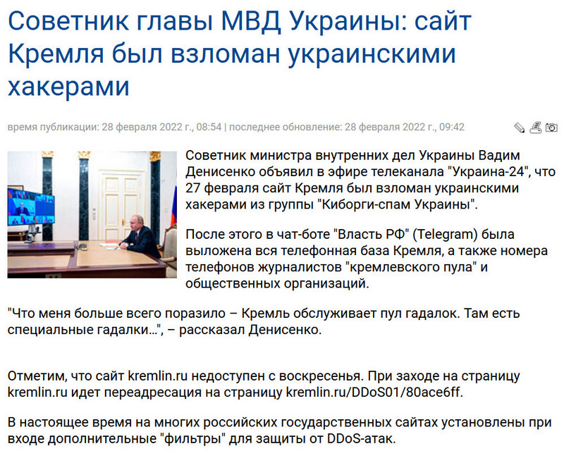 Какая-то тухлая новость. И какой радостный хохот в комментах по ней. Как DDoS позволяет получить доступ хоть к каким-то данным? И вообще, ничего, что этот сайт вообще без SSL-сертификата висит много лет? И говорят, по слухам (я лично не знаю), что там даже фронтэнд сервак в режиме ридонли, а бэкэнда вообще нет. То есть, это просто боксерская груша для пересчета наивных детей, думающих, что они кулцхацкеры… Ну так говорят. Или кто-то верит, что на сервере с вебмордой торчащей без всякой защиты могут быть доступны внутрекремлевские данные? Контура, WAF, DMZ, VPN, не, не слышали? Ну- ну, из сильного врага создавать себе образ тупого утырка - это явно не путь к победе над ним. Печально смотреть на здешних комментаторов.