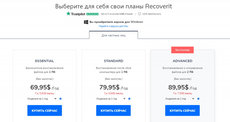 Есть несколько способов приобрести Recoverit. Если вы хотите восстановить данные (компьютерные файлы, рабочую информацию и электронную почту), вы можете выбрать версию для Windows или Mac. Имейте в виду, что Recoverit также предлагает планы по резервному копированию видео и фотографий, а также план для простого резервного копирования ваших будущих данных. Здесь мы расскажем о планах и кратко коснемся бесплатной версии.
