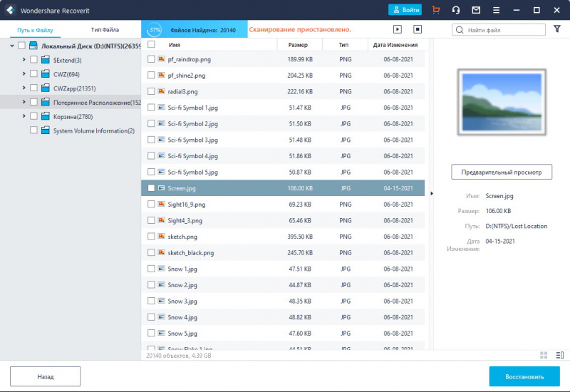 Еще один замечательный плюс Recoverit – наличие бесплатной версии. Она позволяет бесплатно восстановить до 100 МБ данных. Сюда входят все типы данных с множества различных устройств и хранилищ. Перед восстановлением доступен предпросмотр, благодаря которому вы можете решить, какие именно данные восстанавливать.