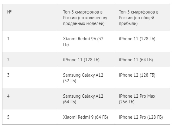 Продажи смартфонов в 2021 году составили более 30 миллионов штук, а объём рынка достиг 730 миллиардов рублей. Ещё был замечен повышенный интерес к устройствам дороже 50 тысяч рублей, продажи которых в количественном выражении выросли на 70%. Их доля достигла в штуках 14%, а в деньгах — 45%.