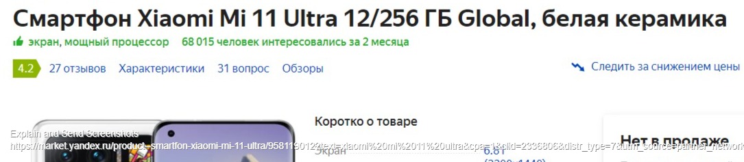 По ссылке на Яндексе мне, кстати, пишет, что MI 11 Ultra нет в продаже 😄