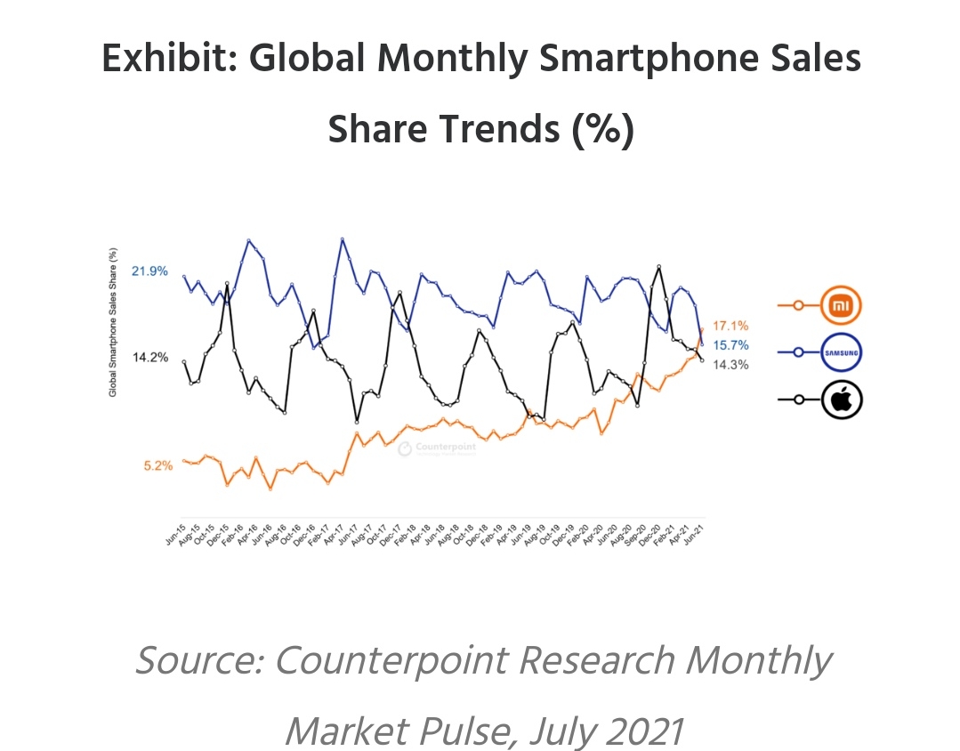 В декабре Apple по продажам обойдет Xiaomi, как происходило все предыдущие годы - см. график Tomxlol в комментарии от 08.08.21 12:47.