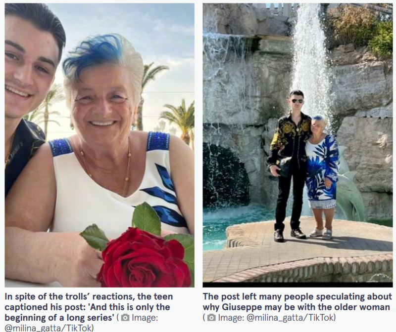 19-летний молодой человек, у которого более 191 000 подписчиков в Тиктоке, во вторник разместил подборку изображений, на которых он стоит на правом колене перед своей 76-летней невестой. Он держит в руках более десятка огромных воздушных шаров в форме сердца и страстно целует свою избранницу. Видео, которое было просмотрено более 138 500 раз, озаглавлено "La nostra promessa" (наше обещание).