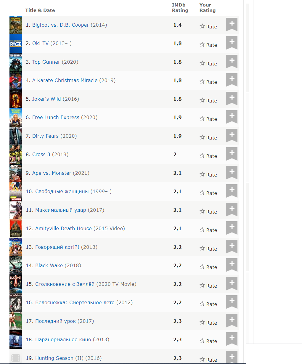 А на IMDB вообще красота - ставим сортировку по рейтингу, по возрастанию, и наслаждаемся, самое лучшее - самое свежее: