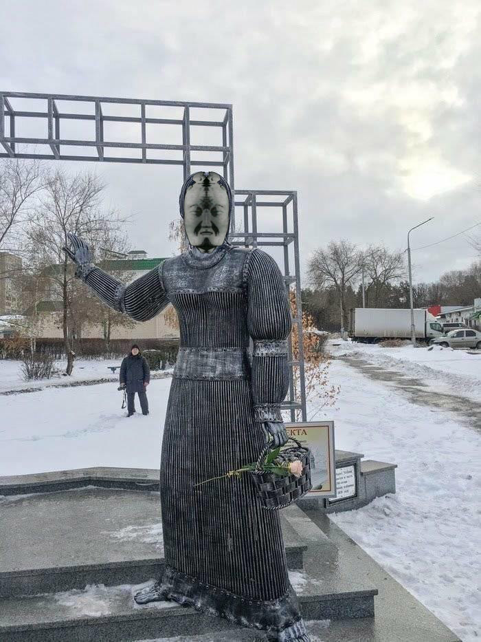 И вроде как в Нововоронежске памятник Алёнушке, когда она невинно убиенная уже стала являться местным жителям в виде призрака. Это хоть как-то объясняет её, хм... необычный вид.