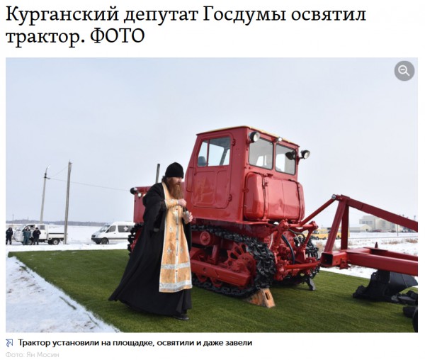 А почему чудо произошло? Потому что курганский депутат Госдумы освятил трактор! Депутаты - они вообще на многие чудеса способны. Смотрите какой депутат колоритный.