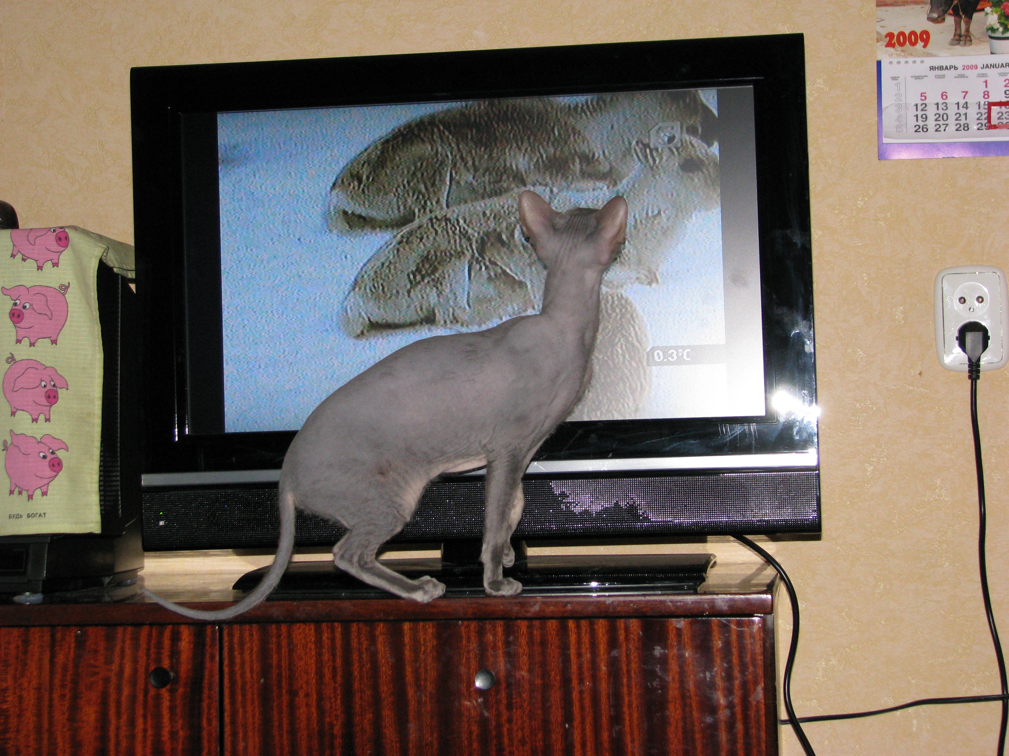 Когда родители купили "Тошибу" со стогерцовой развёрткой, кот иногда с сомнением посматривал в его сторону.