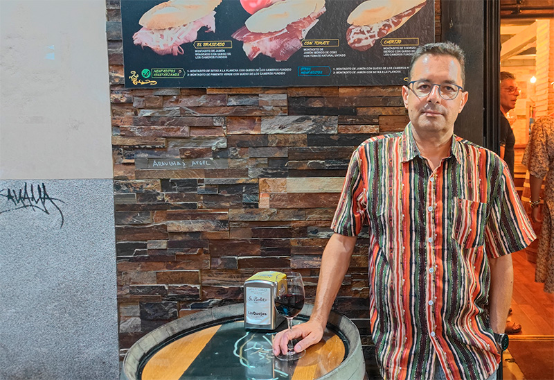 В качестве иллюстрации - это я на улице Лаурель: пробился в один из кабачков, взял бокал вина, вышел на улицу и стою у бочки, которая служит столиком - это прям классика!