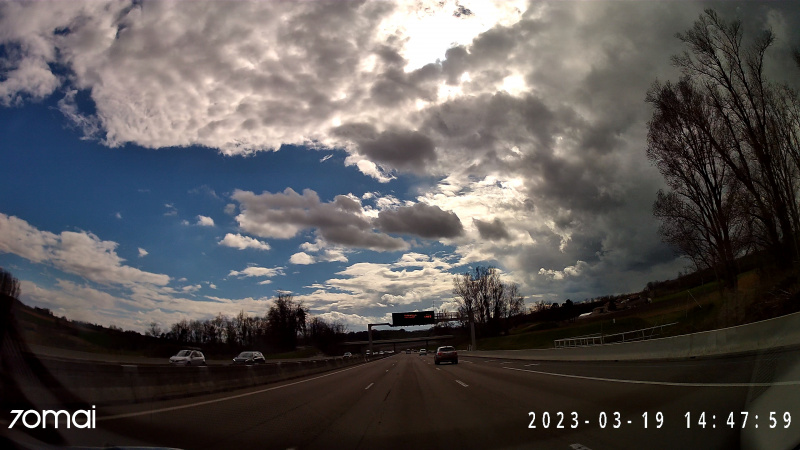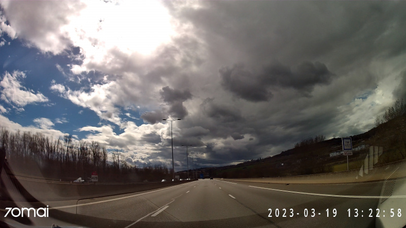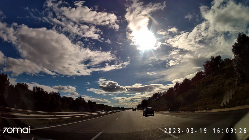 Для адекватной экспозиции дорожной ситуации у меня часть торпеды в кадре, красота неба теряется, но не она важна для авторегистратора.