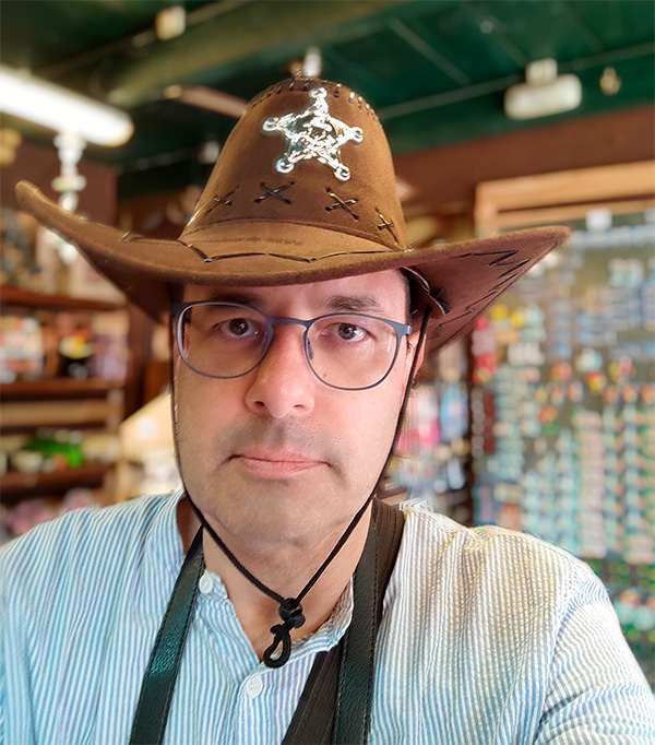 В качестве иллюстрации - унылая рожа в ковбойской шляпе. (Нет, не купил, конечно, только примерил.) Но зато с Канар.