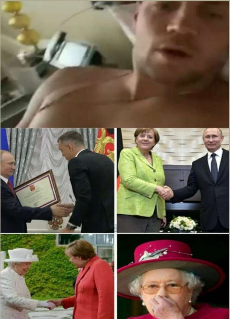 Можно было фрау Меркель и не привлекать... 😄Кстати, королева в перчатках.