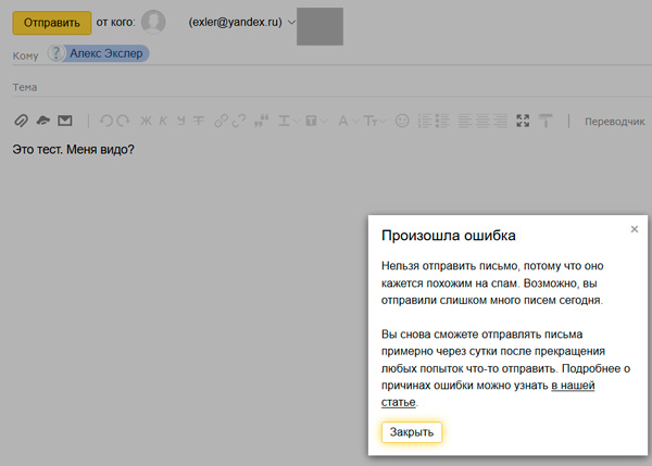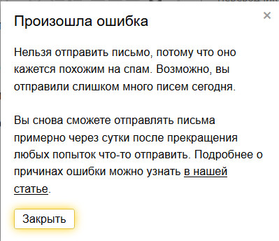Пишу письмо менеджеру. Пытаюсь отправить. В ответ получаю вот это.