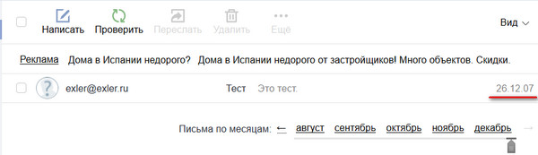 Вот папка "Отправленные". Обратите внимание на дату отправки письма.