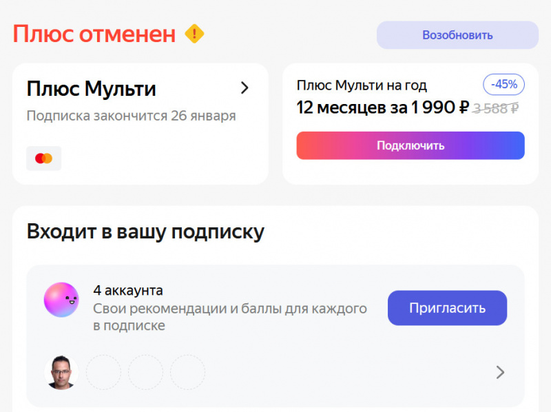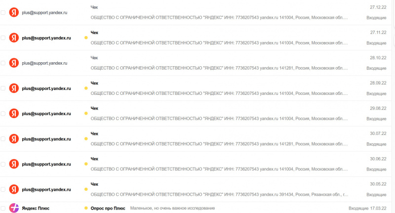 А я тут вспомнил, что у меня есть несколько технических адресов в Яндексе. Зашел в один из них посмотреть - оба-на, меня также подписали на этот Яндекс.Плюс.