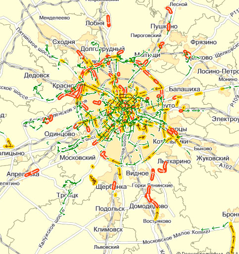 Я смотрю, Яндекс.Пробки теперь и Подмосковье захватывают? Это приятно. Но нужно выяснить, насколько достоверно. А вот что они зелененькие стрелки от GPS водителей туда накладывают и не дают отключать - это они зря. На мой взгляд, только мешают.