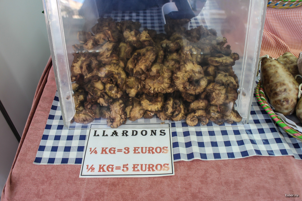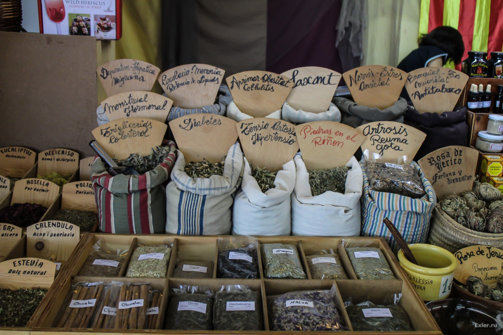 Основное содержимое ярмарки: всякие вкусняшки (хлеб, сыр, колбасы, паштеты, вино, сладости), товары различных небольших каталанских фирм, кафешки, мелкие аттракционы (в основном для детей), народные промыслы, оркестр, одежда и сувениры. Все товары, разумеется, продаются.