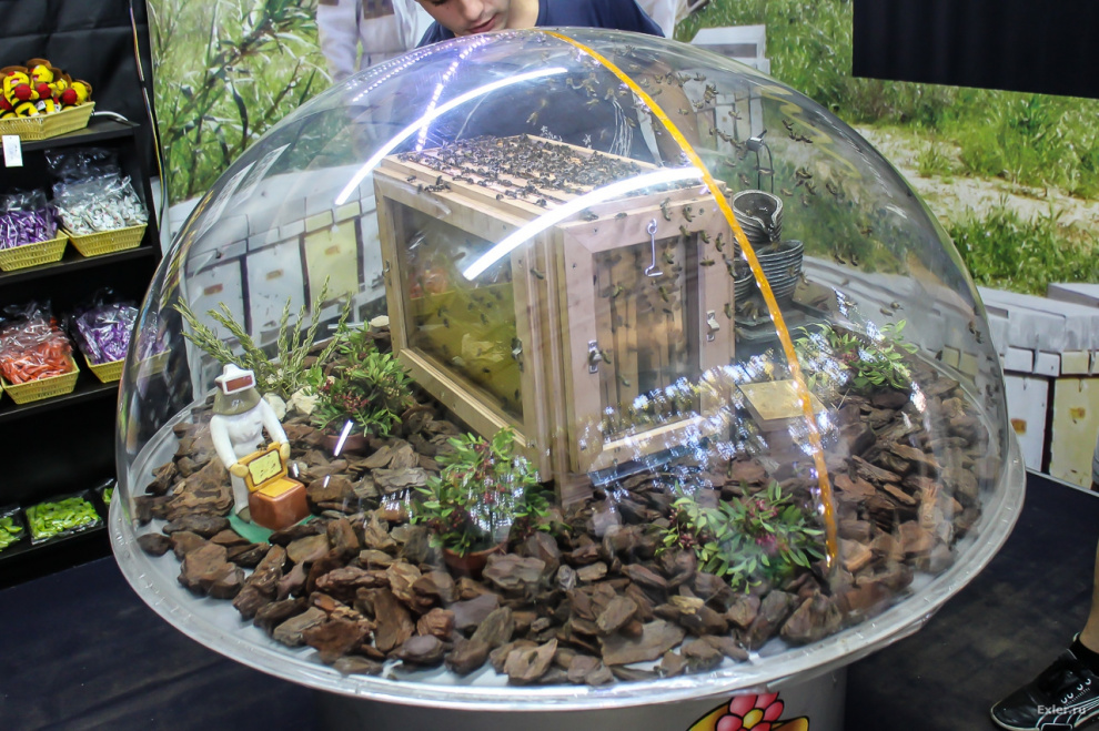 А это такая интересная инсталляция в павильоне с медом. Внутри - пчелы и видны соты.