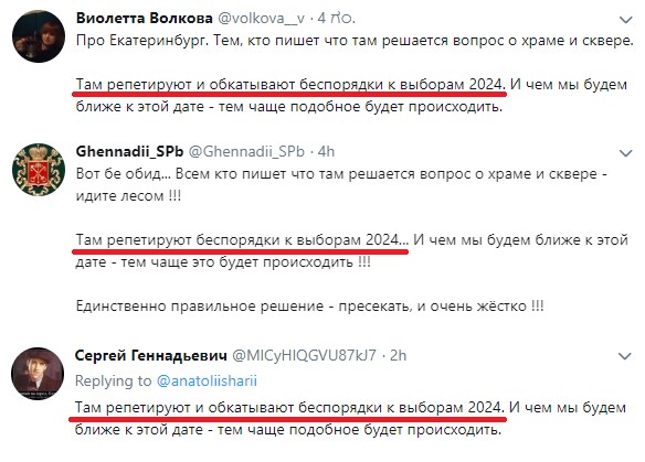 Владимир Соловьев в своей передаче на радио объяснил, что протестирующие жители Екатеринбурга одержимы бесами и напомнил, что это их предки убили царскую семью. (Где-то в Думе в этот момент встрепенулась Поклонская.)
