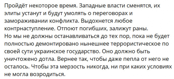 Ларс Триер не может не знать, что Россия напала на Украину и ведет там не просто захватническую войну, но и напрямую осуществляет геноцид украинского народа, что уже было признано во многих европейских странах, да и российские официальные лица неоднократно напрямую заявляли, что ставят своей целью уничтожение украинского государства как такового. Они об этом прямо пишут - вот, например, пост заместителя Совета Безопасности РФ Дмитрия Медведева.