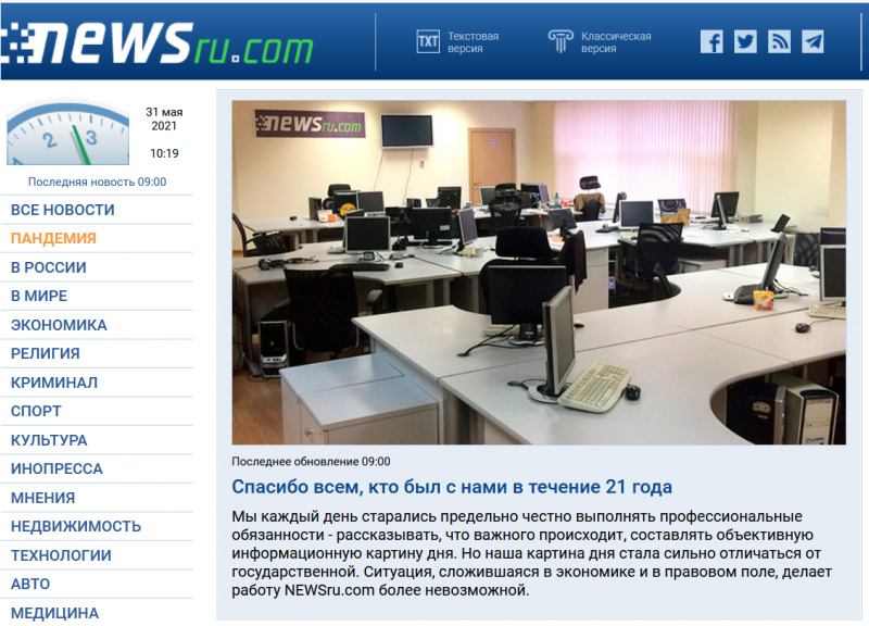 Ситуация, сложившаяся в экономике и в правовом поле, делает качественную работу NEWSru.com более невозможной.