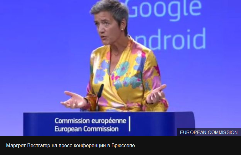 В ответ на это в Google заявили, что теперь, скорее всего, Android перестанет быть бесплатным. Что автоматически поднимет цены на смартфоны. Скажем большое спасибо дебилам из Еврокомиссии и лично вот этой прекрасной женщине - она главная героиня того, что произошло.