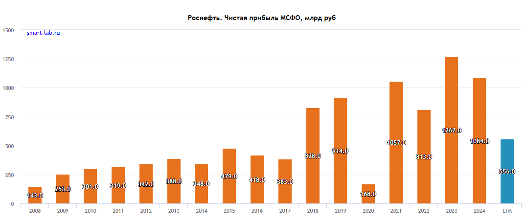 Вот, кстати, прибыль "Роснефти" по годам (МСФО, млрд руб.):