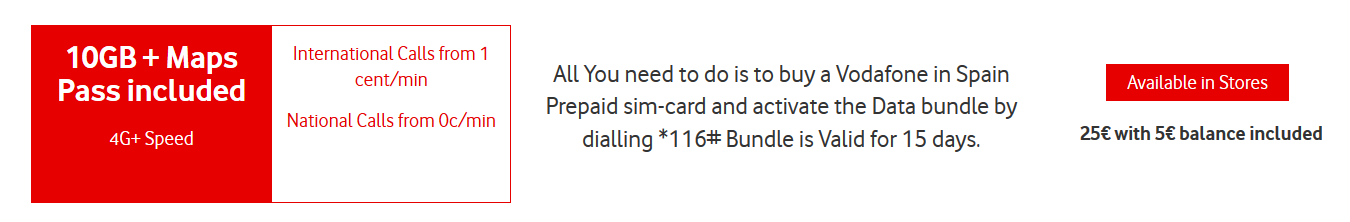 P.S. У испанского Vodafone есть интересное предложение - 10 ГБ с нелимитированным трафиком при навигации за €25, но пакет действует в течение 15 дней.