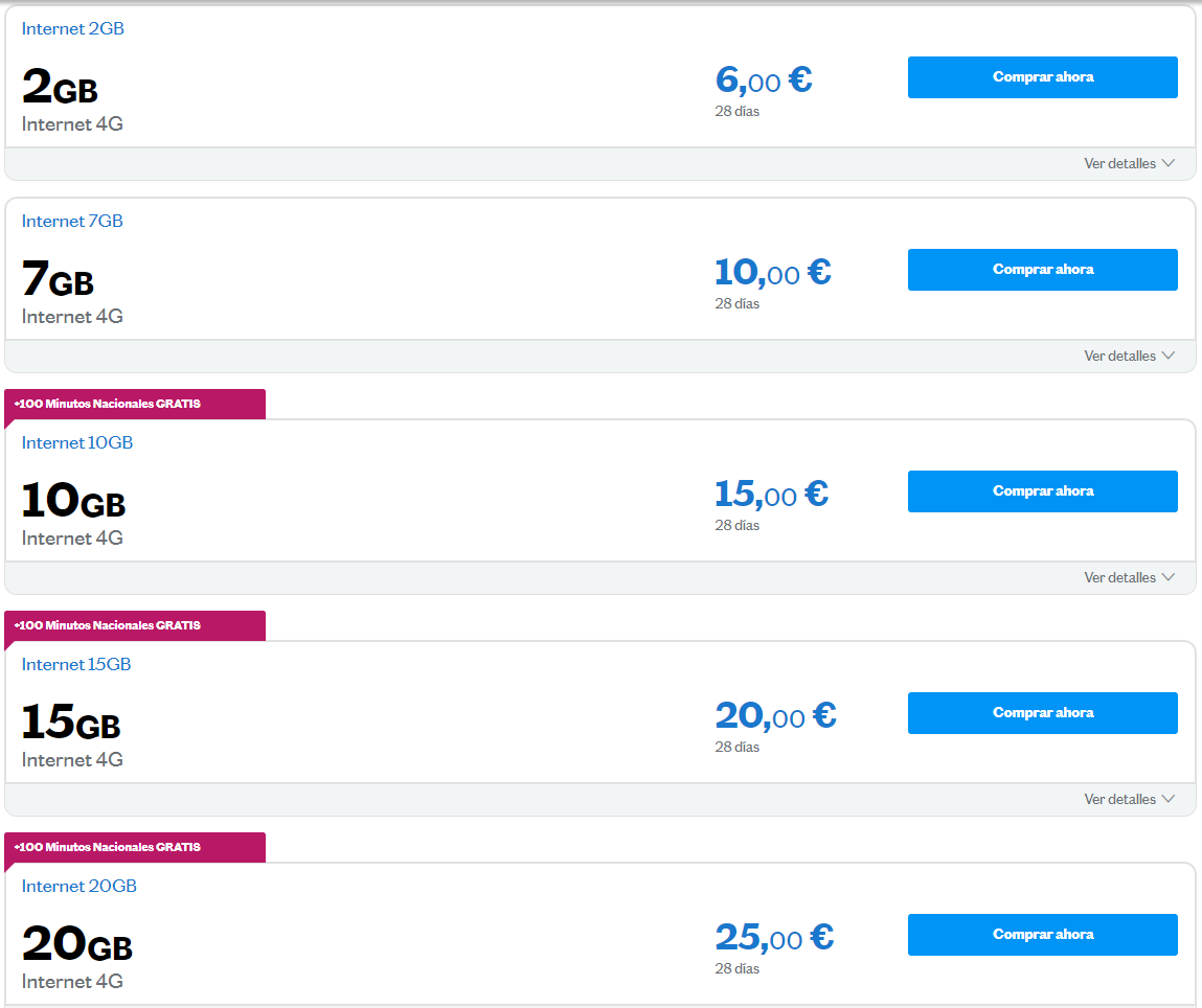 И еще есть тарифы без звонков, только Интернет - это называется Mundo. 6 ГБ за €10. Класс!