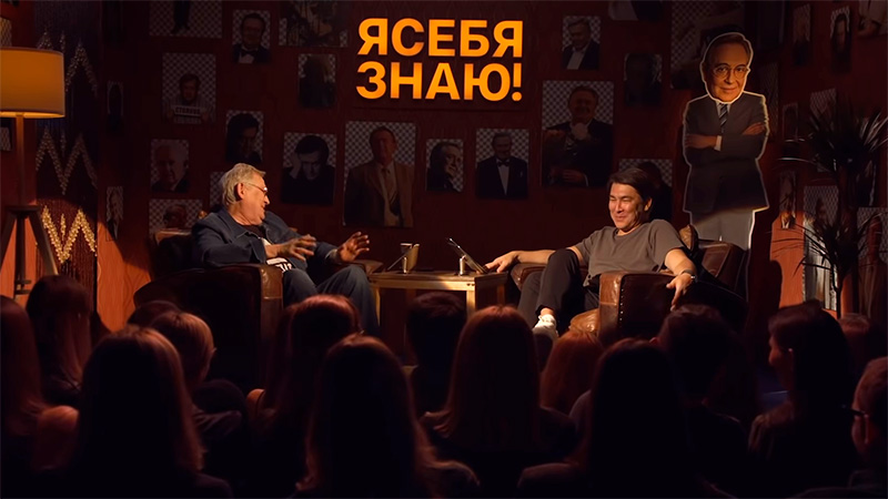 Отличный актер Азамат Мусагалиев ведет передачу "Я себя знаю": он туда приглашает известных людей, задает им вопросы об их же творчестве, и если гость неправильно отвечает на вопрос, то он должен рассказать историю из своей жизни. Я недавно только наткнулся на этот канал, и вот как раз последняя передача - с Юрием Стояновым. Вчера посмотрел. Ну просто здорово! Стоянова вообще слушать - большое удовольствие, Мусагалиев как ведущий - тоже очень хорош, так что вот прям рекомендую - отличная передача получилась!