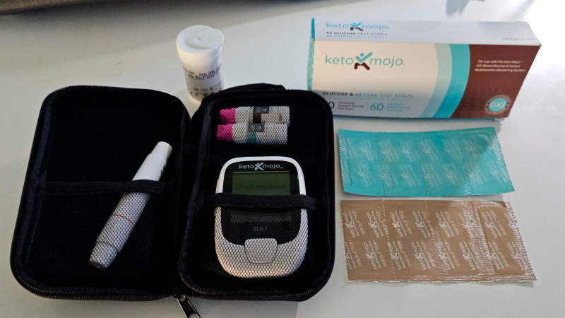 Тут потребовалось купить комбинированное устройство, которое умеет измерять и уровень сахара в крови, и уровень кетонов. (Я с месяц поигрался кето-диетой, не понравилось, после чего вернулся на систему LCHF, по которой питаюсь уже лет пять.)