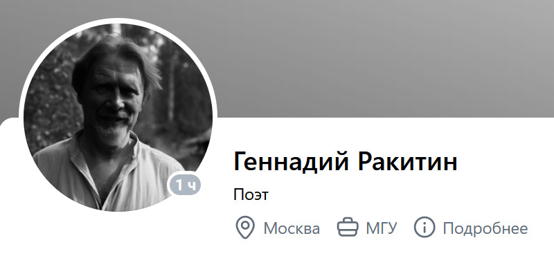 Наверняка почти все уже слышали эту прелестную историю о таком z-поэте Геннадии Ракитине, который хлестким стихом ковал победу Путина над украинскими жидо-бондеровцами и их заокеанскими кукловодами, да так хорошо ковал, что на него подписалось более двух тысяч человек, да еще каких - среди них 95 депутатов Госдумы и 28 сенаторов Совета Федерации, в том числе Дмитрий Рогозин и Андрей Клишас. Сенатор Вячеслав Наговицын отмечал страницу «Ракитина» на фото с майской инаугурации Путина. Стихи Ракитина вышли в полуфинал в конкурсе, который проводит калужское отделение союза литераторов, а журнал «Москва», получающий поддержку от Минцифры, отобрал их для участия в конкурсе «Патриотический верлибр».