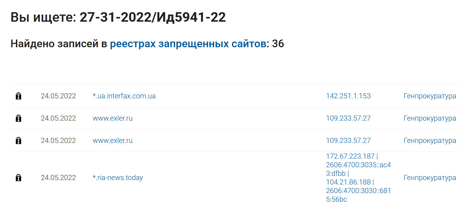 Роскомнадзор по решению Генпрокуратуры заблокировал издания «Вот Так», «Интерфакс-Украина», «Сухуми.инфо» и сайт Алексея Экслера