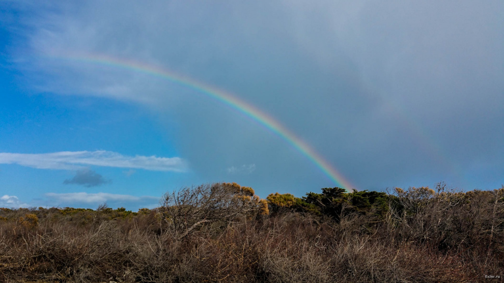 Четко видно обратное расположение цветов на радуге второго порядка и полосу Александра.