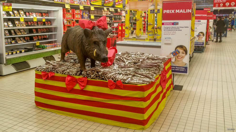 Посетили французский Carrefour - огромный, классный. А этот стенд - каталанские колбасы.