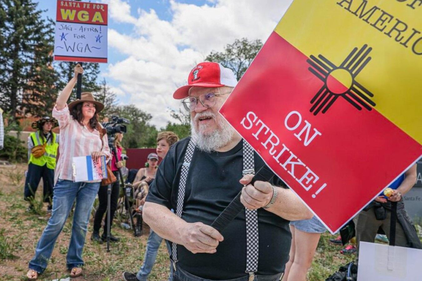 Джордж Мартин вышел на забастовку сценаристов и поддержал забастовщиков под собственным плакатом: