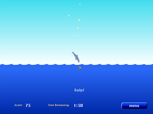 Очередной офис-киллер. Точнее тайм-киллер. Ну или если еще точнее - работа-киллер. Игрушка "Дельфин". Нужно плавать, лопать рыбок, выпрыгивать из воды и делать всякие красивые кульбиты.