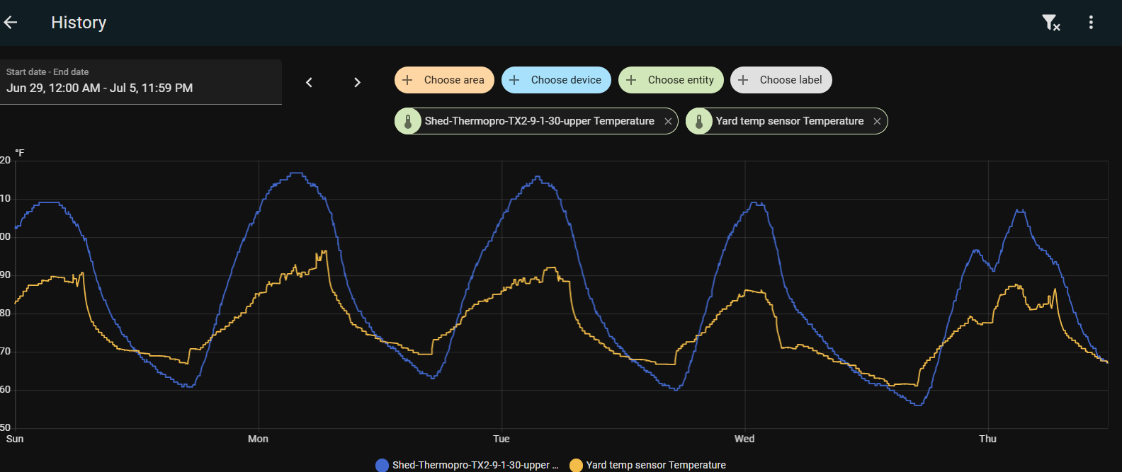 У меня shed, в котором есть дырка под крышей чтобы воздух циркулировал. Вот температура там и температура во дворе в тени
