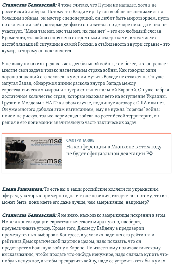 Единственный, кто у нее еще бывает и кто мне интересен - это Станислав Белковский, но я его слушаю у Наташи Влащенко, в "Грэме", у Марка Фейгина, также его собственные передачи, поэтому без его выступлений у Латыниной мало что теряю.