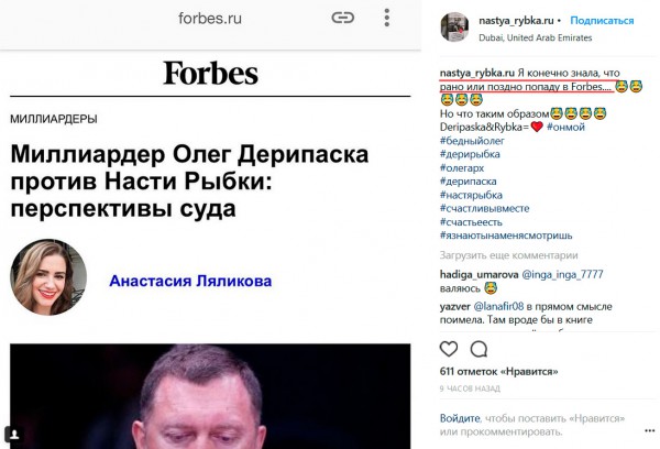Надо отдать должное этой птичке-рыбке, Дерипаску она троллит совершенно зачетно! Впрочем, Дерипаске тоже надо отдать должное: он делает абсолютно все, чтобы выглядеть законченным [догадайтесь_сами].