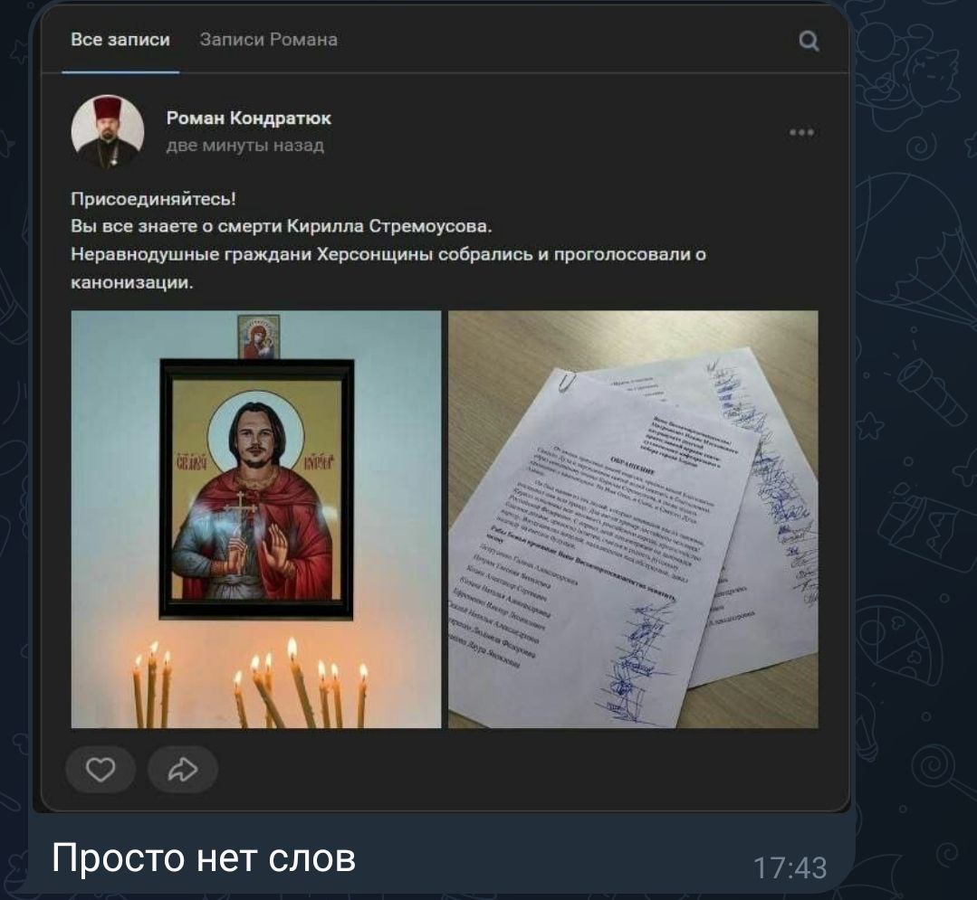 Орденом Мужества посмертно наградил президент России Владимир Путин вице-губернатора Херсонской области Кирилла Стремоусова... За мужество и отвагу, проявленные Стремоусовым при выполнении служебного долга.