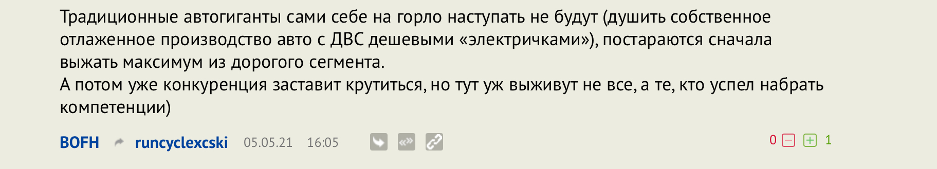 Да все просто. При переходе на электроавто в конкуренции выживут не все классические, ранее доминирующие автопроизводители. И это было понятно еще 3 года назад.