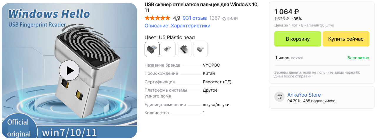 Но их полно вообще аналогичных. Лишь бы Windows Hello поддерживал. Простое же устройство.