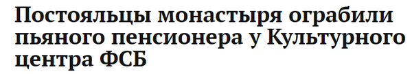 Как всё сошлось : монастырь , пьяный пенсионер , культурный центр и ФСБ вдобавок 😄 Нарочно не придумаешь.