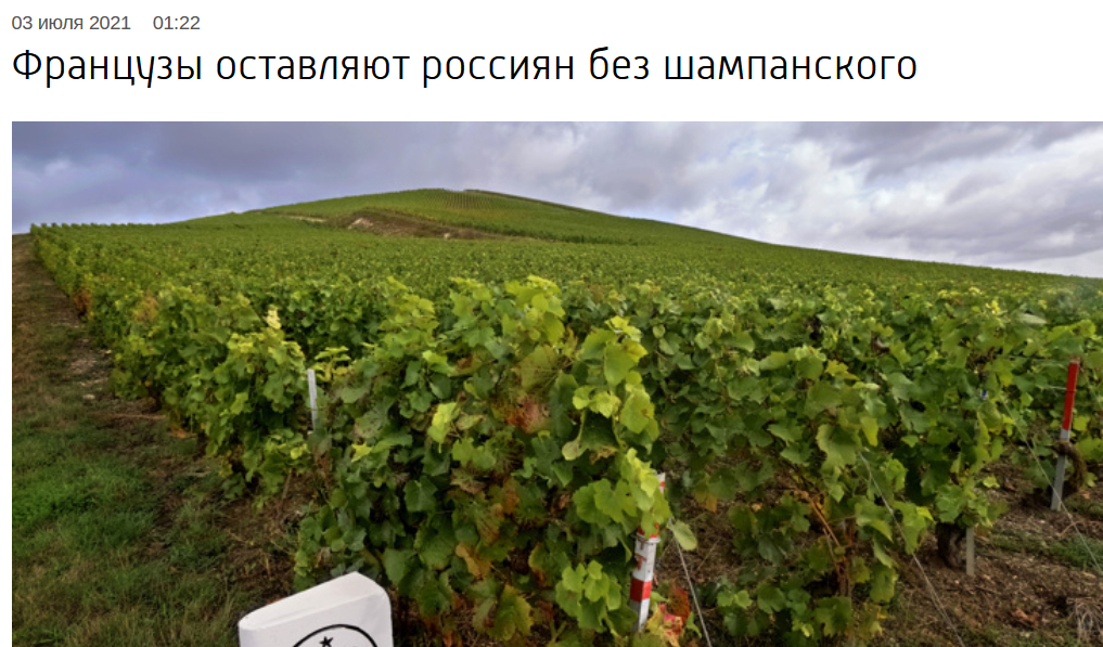 На Вестях.ру. Вот ведь твари-то, эти лягушатники. Оставляют, понимаешь, россиян без шампанского. Ну, точнее, без своей игристой бурды, которую в России теперь шампанским называть нельзя.
