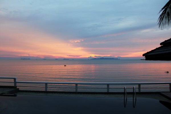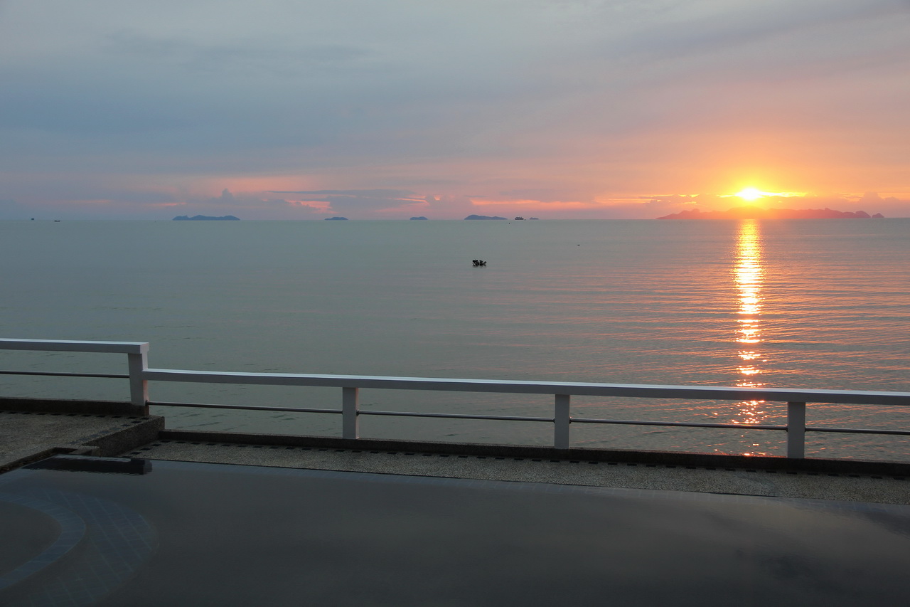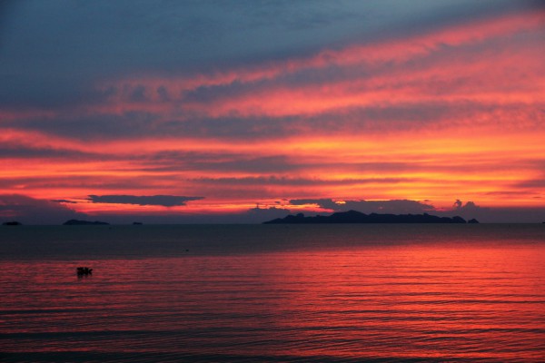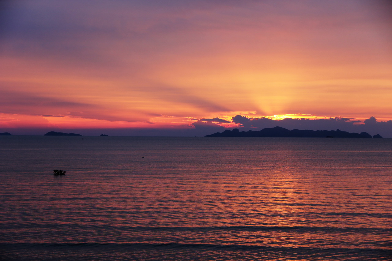 Солнце садится за остров. Жаль, в вашем раю можно было бы зеленый луч наблюдать тихими тайскими вечерами:)